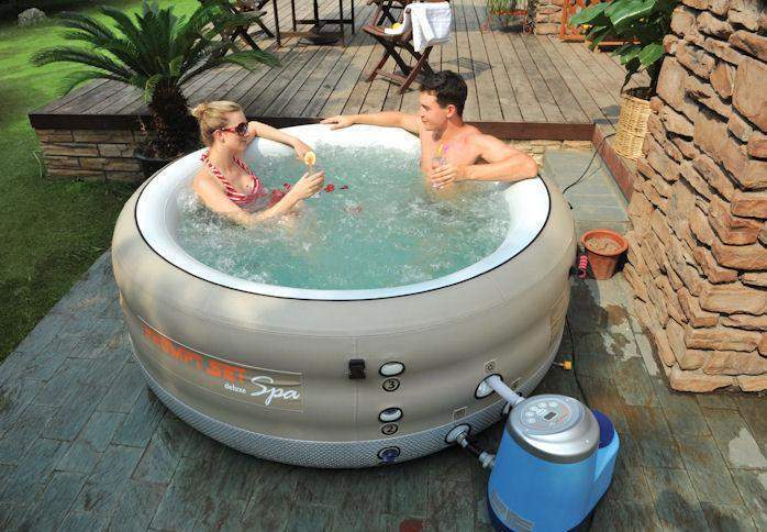Мобильный надувной спа бассейн (джакузи). Отдыхайте в любом месте своего приусадебного участка! Это так здорово погрузиться в теплую бурлящую воду, особенно в межсезонье. Для установки необходима твердая, горизонтальная поверхность. Бассейн расчитан на 2-х взрослых и 2-х детей.