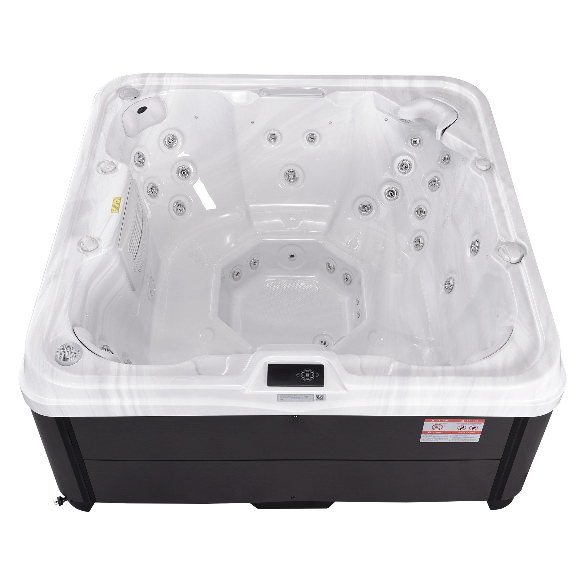 NordicSpa Sif с размером чаши 2,0 x 2,0 м идеально подходит для установки как в помещении, так и на улице. Просторная квадратная чаша с четырьмя эргономичными подголовниками комфортно вмещает до семи человек, создавая условия для полноценного отдыха и общения.